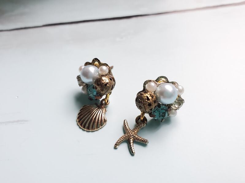 夏にぴったりのかわいいマリンピアス。 ストーンビーズでおしゃれ。