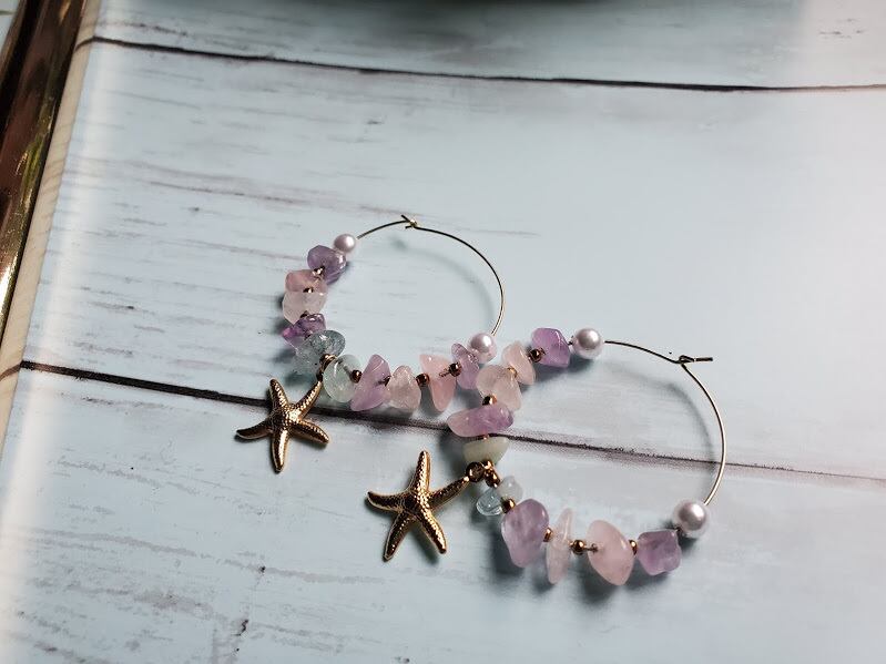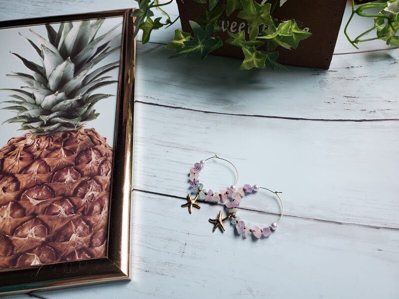 おしゃれなピアスです。 スターフィッシュチャームとビーズが可愛いです。