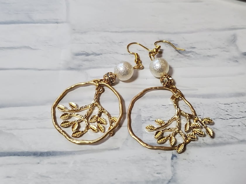 葉っぱのモチーフが揺れて、パール風ビーズとマッチ☆