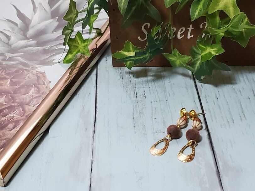 おしゃれなピアスです。 アンティークカラーのビーズとしずく型のモチーフが素敵です。 サイズ 長さ約5.5㎝