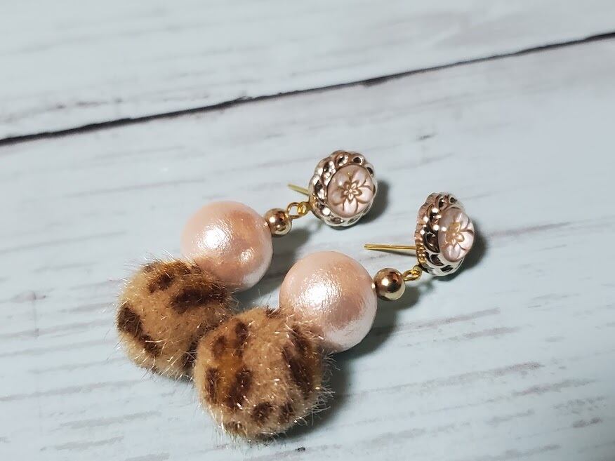 コットンパール風ビーズとレオパードのモチーフがかわいいです。