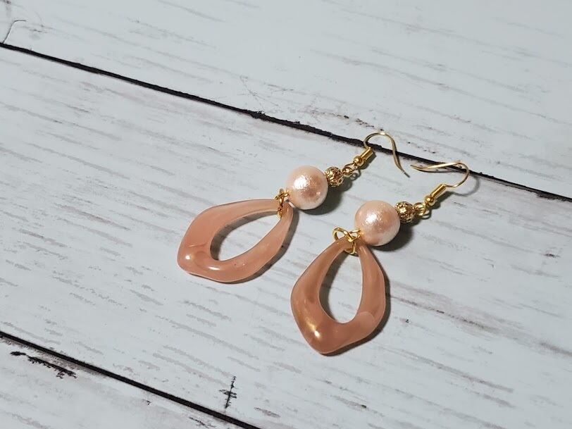 コットン風のパールビーズにべっ甲風のモチーフの組み合わせがかわいいです。