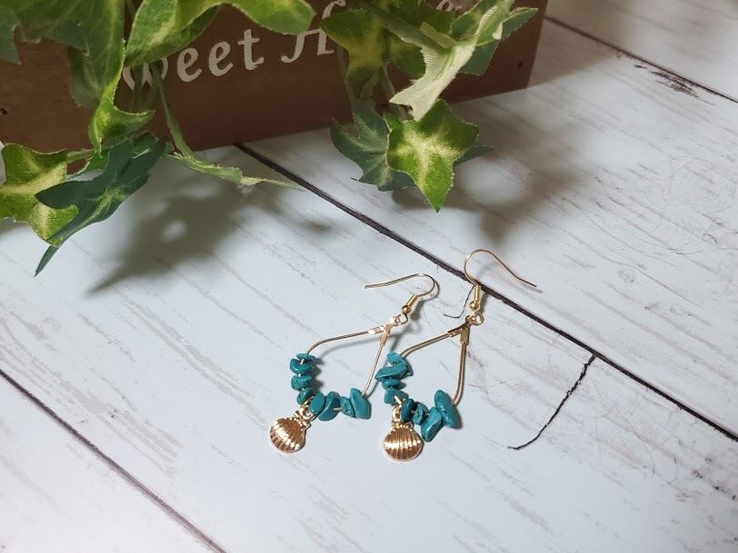 ターコイズカラーのさざれビーズと、シェルのモチーフがかわいいです。