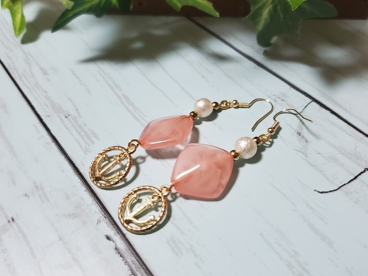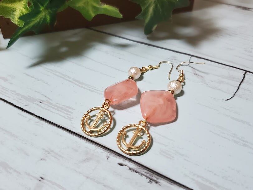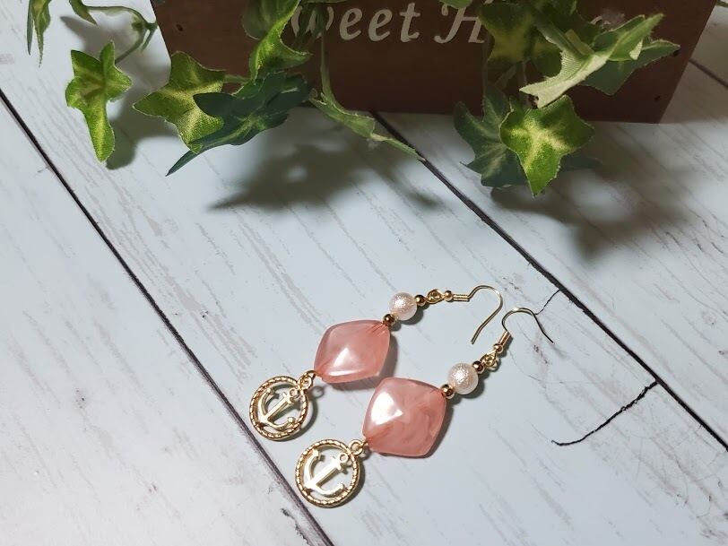 スクエアのキャンディビーズに、アンカーのモチーフがさわやかなデザインです。