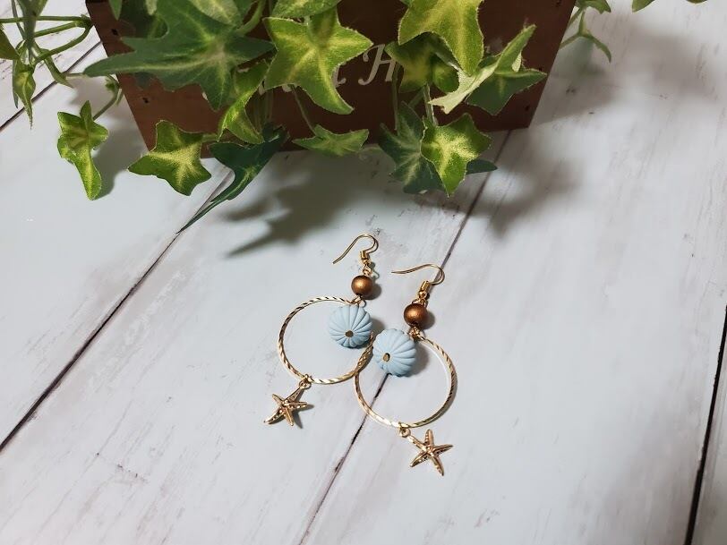 サークルモチーフにビーズとひとでがかわいいです。